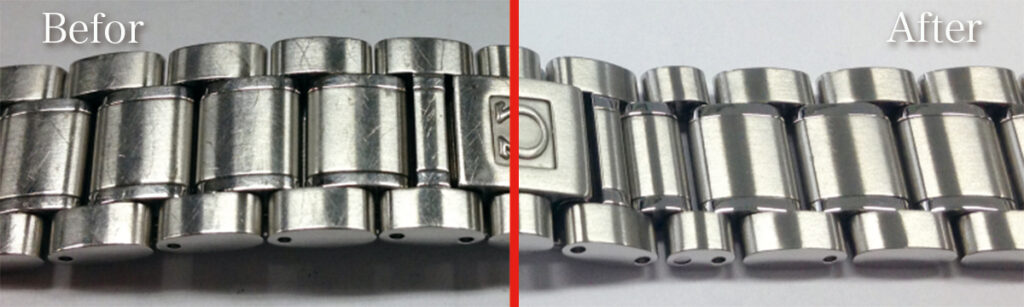時計の研磨は長年ご使用されたケースやバンドの傷や汚れを除去し、くすみを取り、ツヤや光沢を復活させ、ツヤ消し部分の入れ直しなどを行い、新品の状態へ可能な限り近づけるものです。